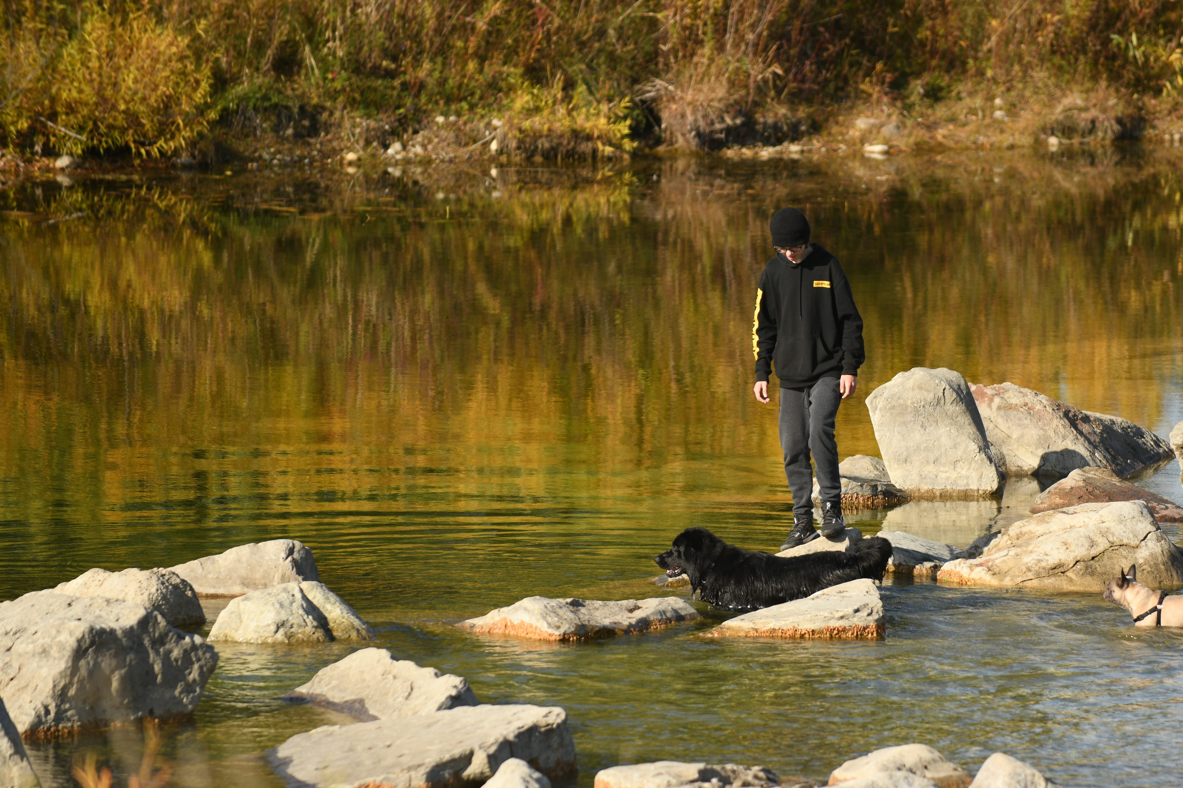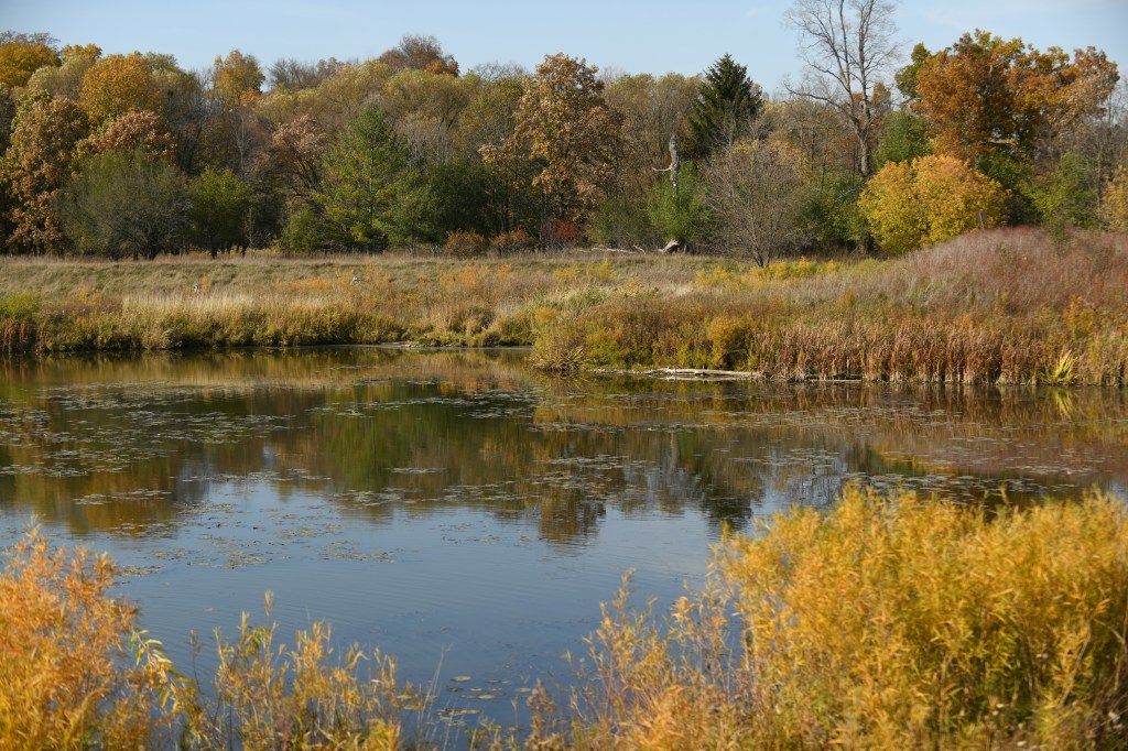 It’s a quiet Sunday afternoon in late October at Snyder’s Flats. People are soaking up what could be the last warm day of the season. They’re fishing, canoeing, hiking, and, of course, walking their dogs. The dogs are off-leash, frolicking on the path, in the grass, among the trees and in the ponds.