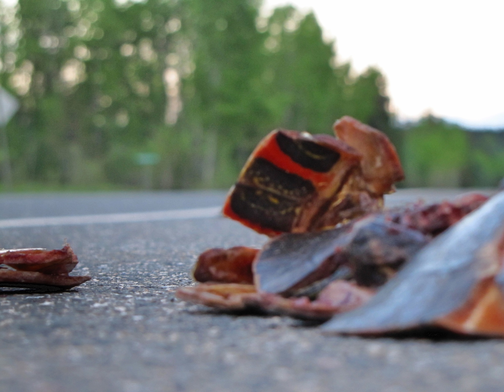 Though I didn’t know it at the time, this project began four years ago when I was living in Geraldton, Ontario. I was driving home from the grocery store after work, when I spotted the bright red pieces of a painted turtle shell shattered on the side of the road. I didn’t make it a kilometre before I turned back, knowing I needed to take a picture. It was all I could do.